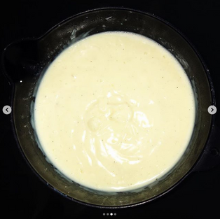 Ajouter ensuite dans le mélange chaud la maïzena et les oeufs, bien mélanger et déposer le tout dans un plat à tarte.